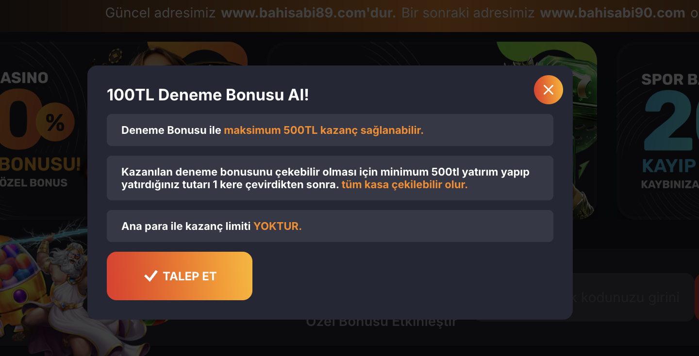 Deneme bonusu almak için bahis sitesinin deneme bonusu sunması gerekir. Söz konusu bonus türü yaygın gibi dursa da son zamanlarda çoğu bahis sitesi deneme bonusu vermez. Ancak yine de deneme bonusu veren bahis sitelerinin olduğunu söylemek mümkündür. Deneme bonusu nasıl alınır? Sorusunu soran bahis severler için bonus işlemlerinin canlı destek üzerinden yapıldığını söyleyebiliriz. Üye olduğunuz bahis sitesinin canlı destek birimine bağlanarak bonus talep edebilirsiniz. Gerekli incelemelerin ardından bonusunuz hesabınıza aktarılacaktır.